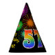 This fun, vibrant birthday party hat design features a colourful bursting celebratory fireworks inspired pattern, along with the number "57" featuring a multicolored rainbow inspired spectrum or gradient pattern. It also features a customisable name and event message, such as a "Happy Birthday" birthday greeting. A birthday-themed paper hat like this might be worn by the attendees at a birthday party being held in celebration of somebody’s fifty seventh birthday. [~Z0000333]