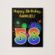 This fun, vibrant puzzle design features a colourful celebratory fireworks inspired pattern, along with the number "58" having a multicolored rainbow inspired gradient pattern, on a black coloured background. It also features a custom name and event message, such as a birthday greeting. A puzzle like this might be a fun way to send a greeting message to acknowledge somebody’s fifty eighth birthday. [~Z0000329]