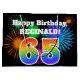 This fun, vibrant gift bag design features a colourful pattern inspired by celebratory fireworks, along with the number "65" having a multicolored rainbow like gradient pattern, on a black coloured background. It also features a custom name and event message, such as a birthday greeting. A colourful gift bag like this might be used when wrapping a gift or present that is being given in celebration of somebody’s sixty fifth birthday. [~Z0000328]