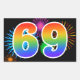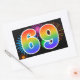 Fun Fireworks + Rainbow Pattern "69" Event Number Rectangular Sticker