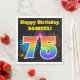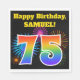 This fun, vibrant paper napkin design features a colourful pattern inspired by celebratory fireworks, along with the number "75" having a multicolored rainbow like gradient pattern, on a black coloured background. It also features a customisable name and event message. Paper napkins like this could perhaps be used at a birthday party being held to celebrate somebody’s seventy fifth birthday. [~Z0000326]