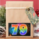 This fun, vibrant sticker design features a colourful celebratory fireworks inspired pattern, along with the number "79" featuring a multicolored rainbow like gradient pattern, on a black coloured background. Stickers like this could perhaps be given as a small gift while celebrating somebody’s seventy ninth birthday, or perhaps for a couple’s seventy ninth wedding anniversary, or some other 79th event. [~Z0000324]