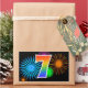 This fun, vibrant sticker design features a colourful celebratory fireworks inspired pattern, along with the number "7" featuring a multicolored rainbow inspired gradient pattern, on a black coloured background. Stickers like this might be used at a party celebrating somebody’s seventh birthday, or perhaps for a couple’s seventh wedding anniversary, or some other 7th event. [~Z0000324]