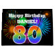 This fun, vibrant gift bag design features a colourful celebratory fireworks inspired pattern, along with the number "80" having a multicolored rainbow inspired gradient pattern, on a black coloured background. It also features a personalised name and event message, such as a birthday greeting. A fun gift bag like this could be used when wrapping a present or gift being given in celebration of somebody’s eightieth birthday. [~Z0000328]