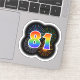 This fun, exciting sticker design features a colourful bursting celebratory fireworks inspired pattern, along with the number "81" featuring a multicolored rainbow like spectrum or gradient pattern. An exciting sticker like this might be used when celebrating somebody’s eighty first birthday, or perhaps a couple’s eighty first wedding anniversary, or some other 81st event. [~Z0000362]