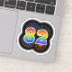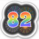 This fun, vibrant sticker design features a colourful bursting celebratory fireworks inspired pattern, along with the number "82" having a multicolored rainbow like spectrum or gradient pattern. An exciting sticker like this might be fun to use when celebrating somebody’s eighty second birthday, or perhaps a couple’s eighty second wedding anniversary, or some other 82nd event. [~Z0000362]