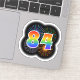 This fun, exciting sticker design features a colourful pattern inspired by bursting celebratory fireworks, along with the number "84" featuring a multicolored rainbow inspired spectrum or gradient pattern. A sticker like this might be used when celebrating somebody’s eighty fourth birthday, or perhaps a couple’s eighty fourth wedding anniversary, or some other 84th event. [~Z0000362]