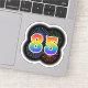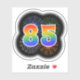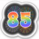 This fun, exciting sticker design features a colourful pattern inspired by bursting celebratory fireworks, along with the number "85" having a multicolored rainbow inspired spectrum or gradient pattern. A sticker like this might be fun to use when celebrating somebody’s eighty fifth birthday, or perhaps a couple’s eighty fifth wedding anniversary, or some other 85th event. [~Z0000362]