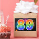 This fun, vibrant sticker design features a colourful pattern inspired by celebratory fireworks, along with the number "89" having a multicolored rainbow inspired gradient pattern, on a black coloured background. Stickers like this might be used at a party celebrating somebody’s eighty ninth birthday, or perhaps for a couple’s eighty ninth wedding anniversary, or some other 89th event. [~Z0000324]