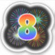 This fun, vibrant sticker design features a colourful pattern inspired by bursting celebratory fireworks, along with the number "8" featuring a multicolored rainbow inspired spectrum or gradient pattern. A fun sticker like this might be used when celebrating somebody’s eighth birthday, or perhaps a couple’s eighth wedding anniversary, or some other 8th event. [~Z0000362]