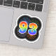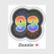 This fun, exciting sticker design features a colourful pattern inspired by bursting celebratory fireworks, along with the number "93" featuring a multicolored rainbow like spectrum or gradient pattern. A sticker like this might perhaps be used when celebrating somebody’s ninety third birthday, or perhaps a couple’s ninety third wedding anniversary, or some other 93rd event. [~Z0000362]