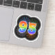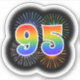 This fun, vibrant sticker design features a colourful pattern inspired by bursting celebratory fireworks, along with the number "95" having a multicolored rainbow like spectrum or gradient pattern. An exciting sticker like this might be used when celebrating somebody’s ninety fifth birthday, or perhaps a couple’s ninety fifth wedding anniversary, or some other 95th event. [~Z0000362]