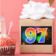 Fun Fireworks + Rainbow Pattern "97" Event Number Rectangular Sticker