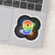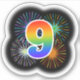 This fun, vibrant sticker design features a colourful pattern inspired by bursting celebratory fireworks, along with the number "9" having a multicolored rainbow like spectrum or gradient pattern. A sticker like this might be fun to use when celebrating somebody’s ninth birthday, or perhaps a couple’s ninth wedding anniversary, or some other 9th event. [~Z0000362]