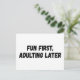 Bold, playful typography reminding you to embrace fun before taking on the serious side of adulthood. Perfect for humour fans, free spirits and those who believe fun comes first.