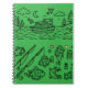 A playful black-and-white doodle featuring fishing gear, cheerful fish, beer bottles, and a lakeside boat scene—perfect for colouring and creative projects.