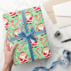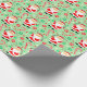 Creative fishing holiday gift wrap featuring fisherman Santa holding a fishing pole surrounded by Christmas candy.