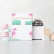 Hot pink fun flamingo standing in a puddle of water. Personalise with Birthday child's name and age.