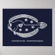 Dive into wall art featuring then flounder fish in white on deepest blue. This artwork is a modern take on the quintessential fish print. It would make a perfect gift for the fish lover in your life, to decorate a child's bedroom or to simply enjoy!