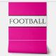 This sporty design features modern FOOTBALL text centred inside a wide white centre stripe highlighted with slender black pinstripes against bright pink background. The colours and text in this design can be personalised.