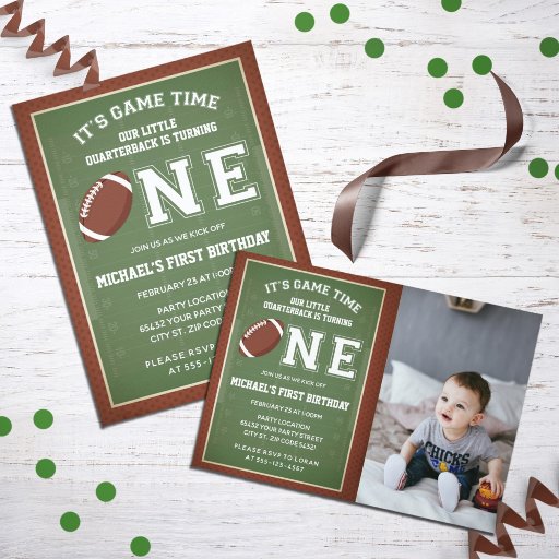Fun, Football Thank You cards. Set, HIKE! This thank you card. is created with a football field, football leather accents with "Thank You" in the centre, the "O" is replaced with a football. Customise this design with your information and any custom message you would like to include!