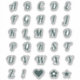 Fun forest green colour font typography monogram text capital letters alphabet sticker pack for monogramming, personalising, customising, note writing, journals, notebooks, and more. This set also includes an exclamation point, heart, flower, and star.