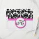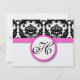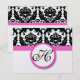 Vintage Modern Black and White Floral Damask Patterns with Bright Fuchsia Pink Trim Wedding Invitations. Perfect for Rococo Baroque, Mediaeval Renaissance, Art Deco Art Nouveau, Roaring 20s Gatsby, Victorian Weddings or Elegant Farmhouse Wedding Themes Venues.
