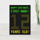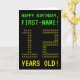 The front of this geeky, customisable birthday card design features the messages "HAPPY BIRTHDAY" and "12 YEARS OLD!", along with a editable recipient name. The messages on the front have a pixelated, vintage video game style look. The digits of the large number "12" on the front consist of smaller sized digits "1" or "2", giving an ASCII art inspired look. The inside features a customisable birthday greeting message. A nerdy style, customised birthday greeting card like this might be a fun way to celebrate somebody’s twelfth birthday. [~Z0000366]