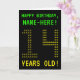 The front of this geeky, customisable birthday card design features the messages "HAPPY BIRTHDAY" and "14 YEARS OLD!", along with a editable recipient name. The messages on the front have a look inspired by pixelated retro computer games. The digits of the large number "14" on the front are themselves made up of smaller sized digits "1" or "4", giving an ASCII art inspired look. The inside features a customised birthday greeting message. A nerdy style, customised birthday greeting card like this might be a fun way to celebrate somebody’s fourteenth birthday. [~Z0000366]