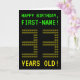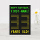 The front of this geeky, editable birthday card design features the messages "HAPPY BIRTHDAY" and "33 YEARS OLD!", along with a customisable recipient name. The messages on the front have an appearance inspired by pixelated vintage computer games. The digits of the large number "33" on the front are themselves made up of smaller sized "3" digits, giving an ASCII art inspired look. The inside features a personalised birthday greeting message. A nerdy style, personalised birthday greeting card like this might be a fun way to send birthday wishes to somebody who is celebrating their 33rd birthday. [~Z0000366]