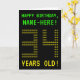 The front of this geeky, customisable birthday card design features the messages "HAPPY BIRTHDAY" and "34 YEARS OLD!", along with a personalised recipient name. The messages on the front have an appearance inspired by pixelated retro computer games. The digits of the large number "34" on the front consist of smaller sized "3" or "4" digits, giving an ASCII art inspired look. The inside features a customisable birthday greeting message. A nerdy style, customised birthday greeting card like this might be used to send a birthday greeting message to somebody who is celebrating their thirty fourth birthday. [~Z0000366]