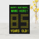 The front of this nerdy, customisable birthday card design features the messages "HAPPY BIRTHDAY" and "85 YEARS OLD!", along with a personalised recipient name. The messages on the front have an appearance inspired by pixelated classic video games. The digits of the large number "85" on the front are themselves made up of smaller sized "8" or "5" digits, giving an ASCII art inspired look. The inside features an editable birthday greeting message. A geeky style, personalised birthday greeting card like this might be a silly way to commemorate somebody’s eighty fifth birthday. [~Z0000366]