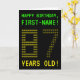 The front of this nerdy, personalised birthday card design features the messages "HAPPY BIRTHDAY" and "87 YEARS OLD!", along with a personalised recipient name. The messages on the front have a pixelated, vintage computer game style look. The digits of the large number "87" on the front consist of smaller sized "8" or "7" digits, giving an ASCII art inspired look. The inside features a birthday greeting message that can be edited. A geeky style, customisable birthday greeting card like this might be given to commemorate somebody’s 87th birthday. [~Z0000366]