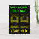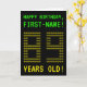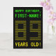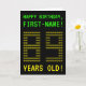 The front of this geeky, personalised birthday card design features the messages "HAPPY BIRTHDAY" and "89 YEARS OLD!", along with a customisable recipient name. The messages on the front have an appearance inspired by pixelated vintage/classic/retro video games. The digits of the large number "89" on the front are themselves made up of smaller sized "8" or "9" digits, giving an ASCII art inspired look. The inside features a personalised birthday greeting message. A nerdy style, personalised birthday greeting card like this might be a fun way to send a birthday greeting to somebody who is celebrating their 89th birthday. [~Z0000366]