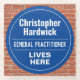 Fun Commemorative Style Wall Plaque Gift in the form of a Glass Coaster for a Doctor or General Practitioner. Blue and white plaque. Edit the design to change the wording to suit the gift recipient.