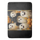 Decorate your bathroom happy for Halloween with this fun design featuring a black background with ghosts wearing with hats and smiling pumpkin jack-o-lanterns. Gold accents on each side of the design.