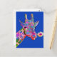 Send a postcard like no other. This pop art design of a colourful giraffe with a sunflower against a blue background is sure to delight everyone on your mailing list.