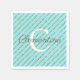 Fun Girly Teal Blue Glitter Stripes Monogram Napkin