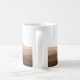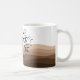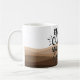 Fun humourous mug for coffee lovers, featuring the caption "Give me coffee and no one gets hurt" in black modern typography on a white background with decorative coffee-brown waves.