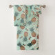 On this stylish towel set is a minty green backdrop with silver edging on the sides complete with shimmery pineapples. Fun glam vibes.