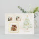 Fun and whimsical holiday greeting featuring three gold foil line drawn doodle square photo frames, watercolor Christmas tree with custom gold foil Peace on Earth calligraphy graphic on a watercolor background. The back features an additional photo template and text fields.