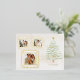 Fun and whimsical holiday greeting featuring three gold foil line drawn doodle square photo frames, watercolor Christmas tree with custom gold foil Peace on Earth calligraphy graphic on a watercolor background.