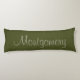 This reversible design offers a row of gold faux foil geese, and their shadows, marching across a long pillow in the trendy shade of deep sage green. On the back, add your name in a paler hue in a semi-script font. Enjoy different display options to match your moods.