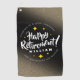 Featuring playful handwritten lettering with stylised stars and gold glitter fading to a dusty black background, this festive retirement golf towel is a great way to recognise retiring coworkers who have a fondness for hitting the greens. Add name of honoree and/or custom messaging as desired.