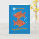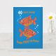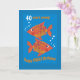 A fun 40th Birthday Card for a Piscean, with two brilliant orange and golden yellow fishes on a bright blue background, from a hand-painted paper collage by Judy Adamson. If you don't see the age you need, you may like to know that there is a custom front version of this birthday card.
