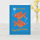 A fun 60th Birthday Card for a Piscean, with two brilliant orange and golden yellow fishes on a bright blue background, from a hand-painted paper collage by Judy Adamson. If you don't see the age you need, you may like to know that there is a custom front version of this birthday card.
