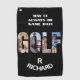 The golf towel exceeded my expectations! My husband actually approved of it! He liked the picture quality, thickness and overall usefulness of the golf towel I ordered to commemorate his lowest ever golf score. He liked it so well that I ordered 8 more towels with photos of his home golf course. Each one of the eight has the name of one of his golf group members. I will give them as party favors at my husband's 70th birthday party later this year. The different names were easy to add because the Zazzle template is so very easy to use. The colors were bright and authentic in all 9 of the towels that I made. The one of the 9 that I ordered has come out of the wash and line dry looking great.