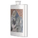 The product is a good size and came exactly as it was pictured.  The lid is not attached to the flask, which could be dangerous on drunken nights... The print came out surprisingly well and looks very sharp.  Would definitely recommend.