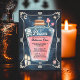 Step into a world of enchantment at our Girls Night Out Halloween Party! Our witchy invitation features a vintage poison glass bottle, filled with mysterious pink elixir and shimmering glitter. Surrounded by a gothic vintage frame, the illustration is adorned with mystical illustrated elements like a mystic eye, crescent moon, twinkling stars, glowing candles, delicate leaves, magical pink mushrooms, and a hint of danger with a crossbone and skull. The dark blue watercolor background sets the stage for a night of magic and mischief, and the vintage rough script invites you to "Choose Your Poison" for an unforgettable Halloween celebration. Don't forget your costumes, Let your style casts a spell!