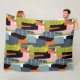 A fun modern graphic abstract houses repeat pattern in lime green, light pink, slate grey, burnt orange. Makes a great gift for a student dorm room, perfect to snuggle up and stay warm in.